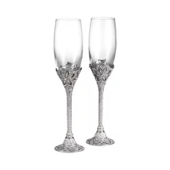 - Silver-tone pewter frame is encrusted with hundreds of handset clear and light sapphire European crystals.