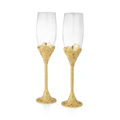 - Silver-tone pewter frame is encrusted with hundreds of handset clear and light sapphire European crystals.