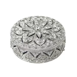 - Exquisite design embellished with silver-finished pewter peacock feathers hand-set with clear European crystals