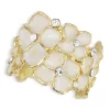 - Antique brass-finished cast pewter with green hand-enameling, encrusted with hand-set clear and pink European crystals.